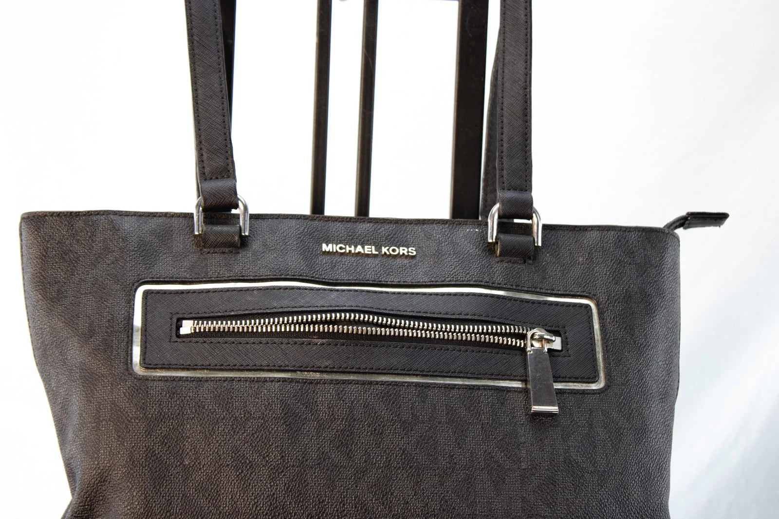 ✨ Michael Kors Jet Set East West Top-Zip Tote – Black MK Signature Canvas