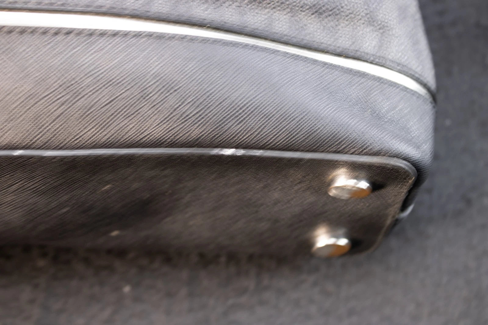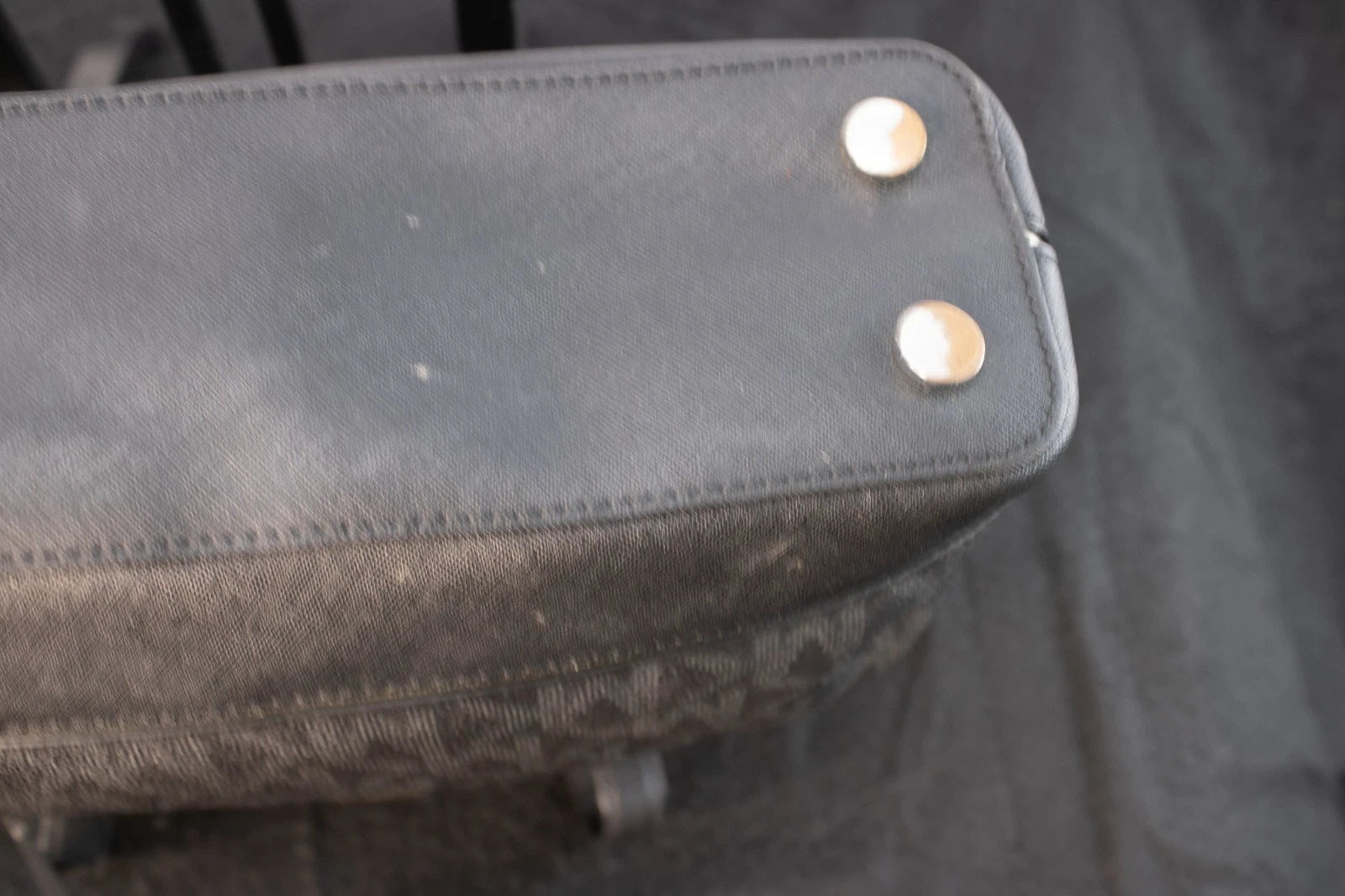 Good pre-owned condition. Light rub marks on bottom edges and minor scuffs on handles (see photos). Hardware bright, zipper smooth, and lining clean. A sturdy, well-kept bag with plenty of life left.