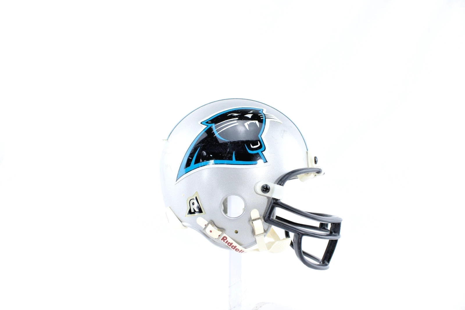 Step back to the early days of the Carolina Panthers franchise with this official 1995 vintage Riddell mini helmet - the perfect display piece for any die-hard fan or collector. Sporting the iconic silver shell, black facemask, and teal-trimmed panther logo on both sides, this helmet captures a bold era of NFL design.