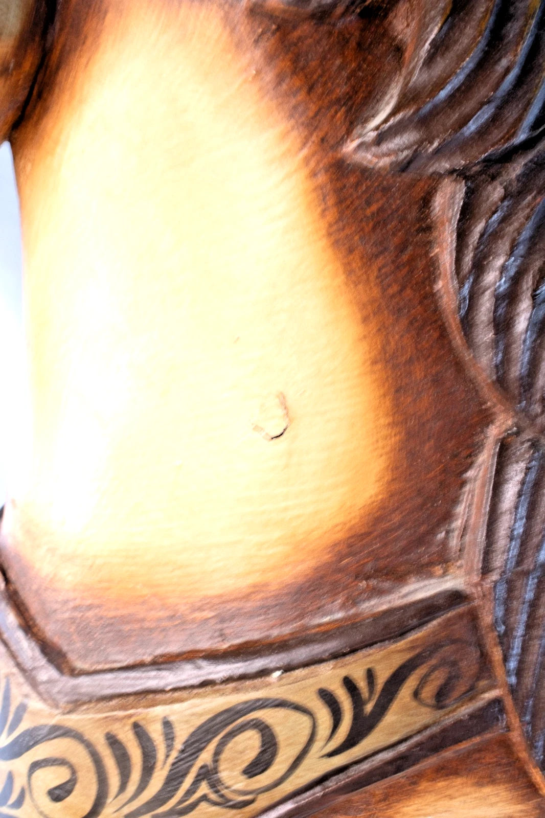 Condition: Antique condition with visible wear - repaired handle, stable surface cracks, and scuffs from age. Rolls smoothly; heavy and sturdy.