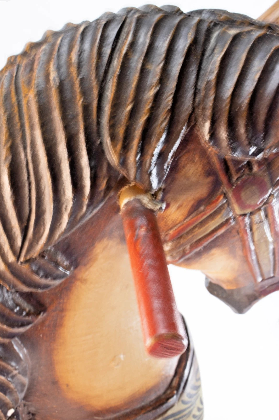 1885-1920s Hand-Carved Wooden Riding Horse w/Iron Wheels β Antique Folk Art 37