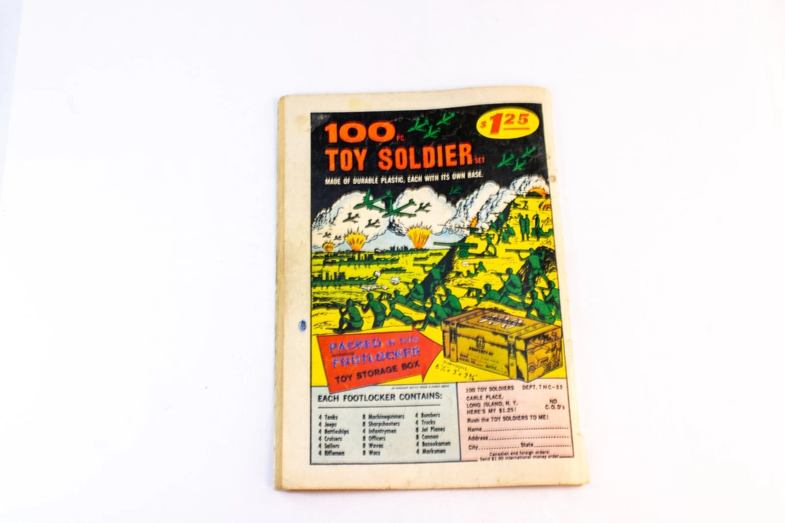 This copy is in Good/Good+ condition. The cover shows moderate wear, including spine stress, edge wear, and light creasing. Pages are complete with age toning typical for its era. Some pen marks on cover. Binding intact. A well-loved but solid reader's copy, full of 1960s DC charm.