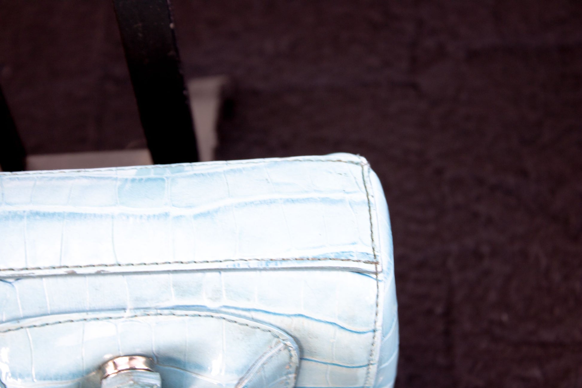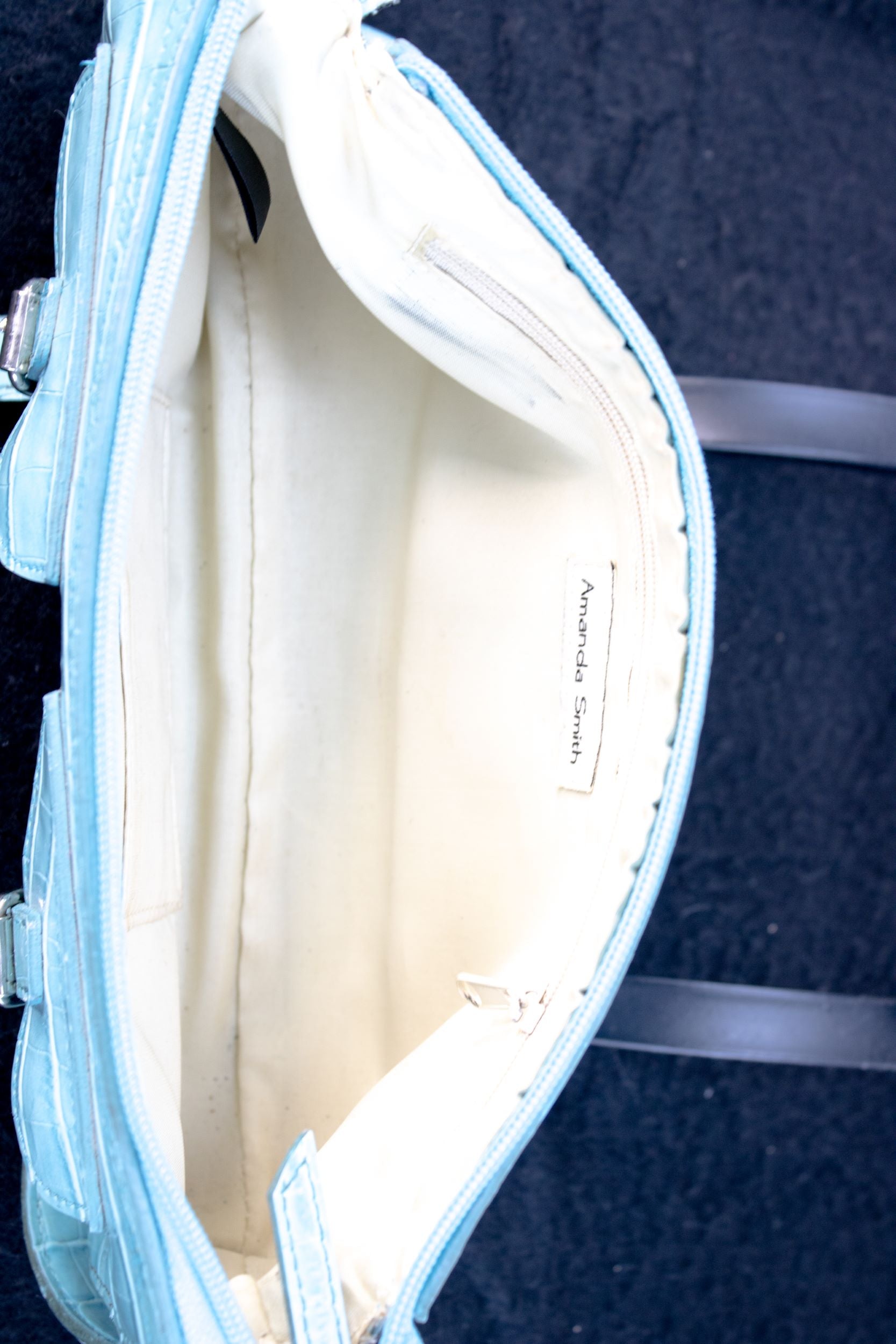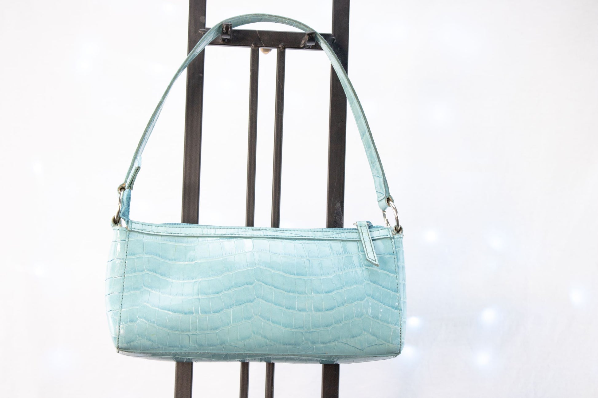 Amanda Smith Blue Croc Shoulder Bag | Y2K Mini Purse | Glossy Faux Croc