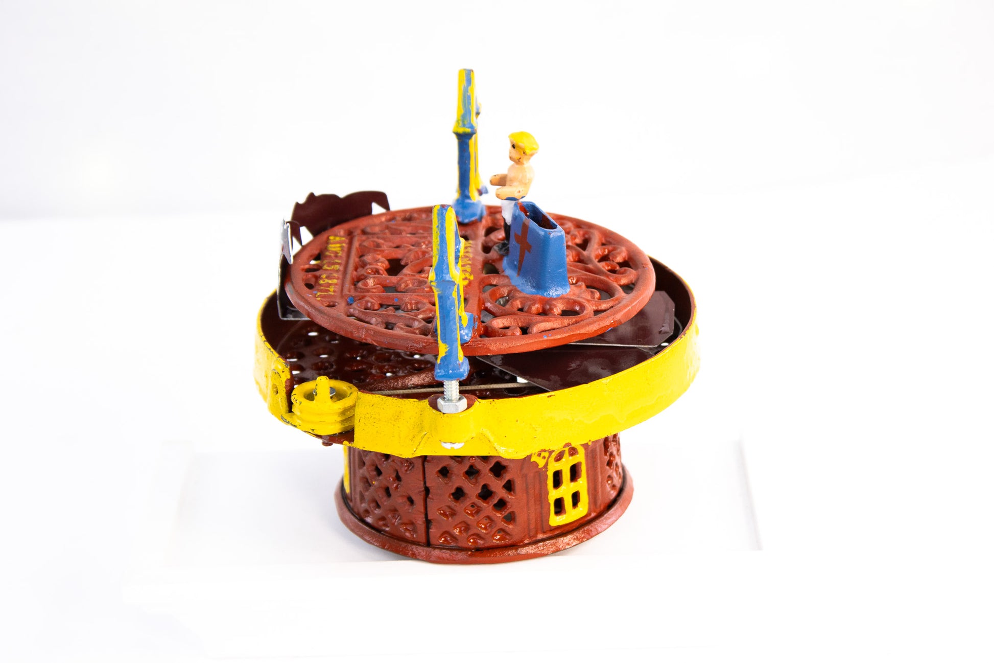 Cast iron, hand-painted enamel, steel hardware