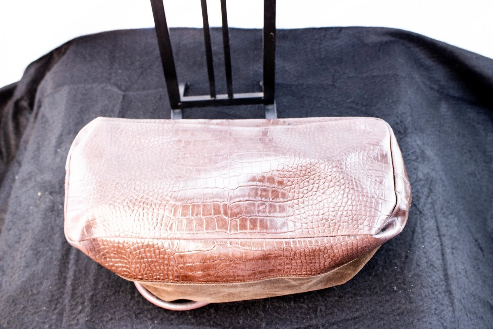 Brown Suede & Croc-Embossed Tote Bag – Large Shoulder Purse by HPHS