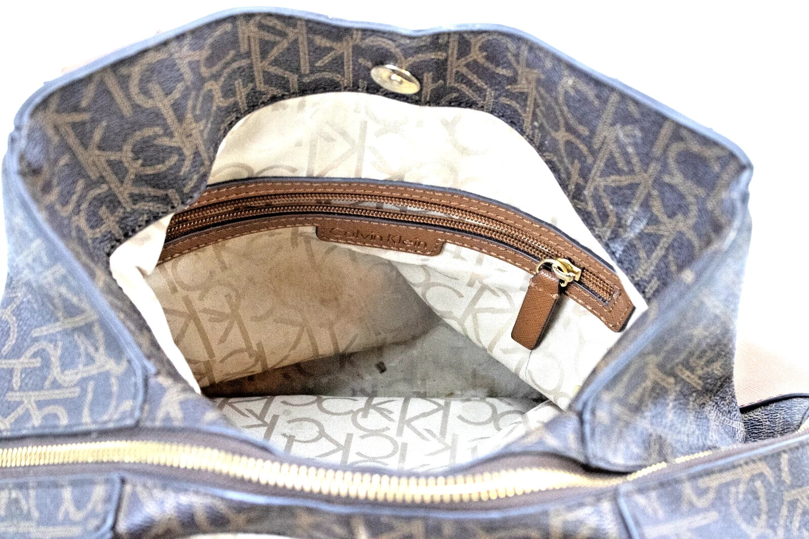 Calvin Klein Brown Monogram Tote Bag – CK Logo Shoulder Purse – Vintage-Inspired