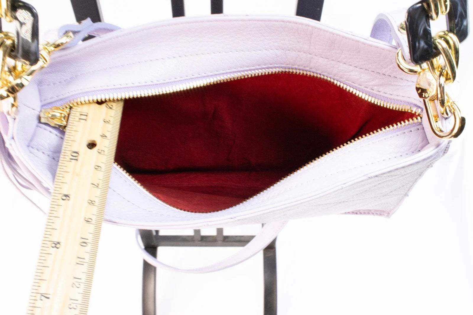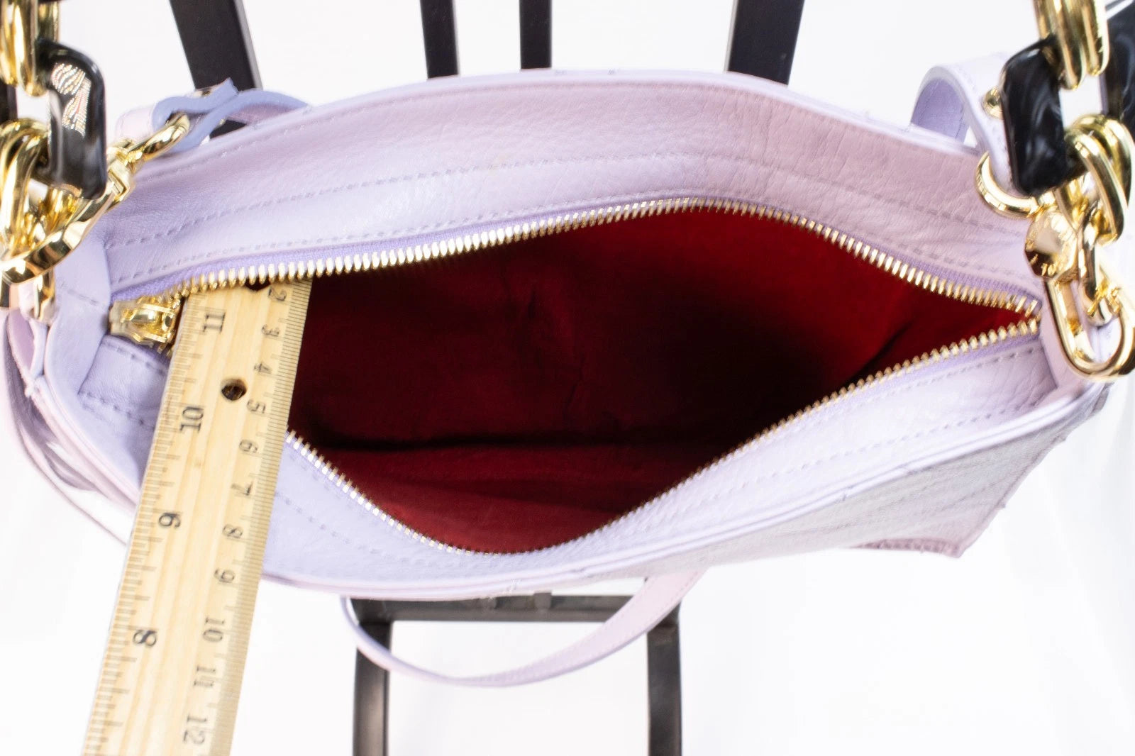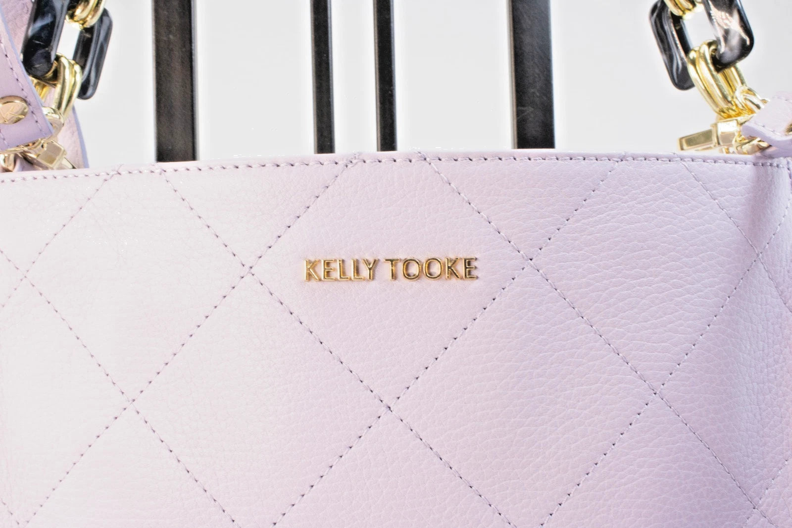 Kelly Tooke Sutton Crossbody Bag / Lilac Leather Quilted Handbag w/ Resin Chain