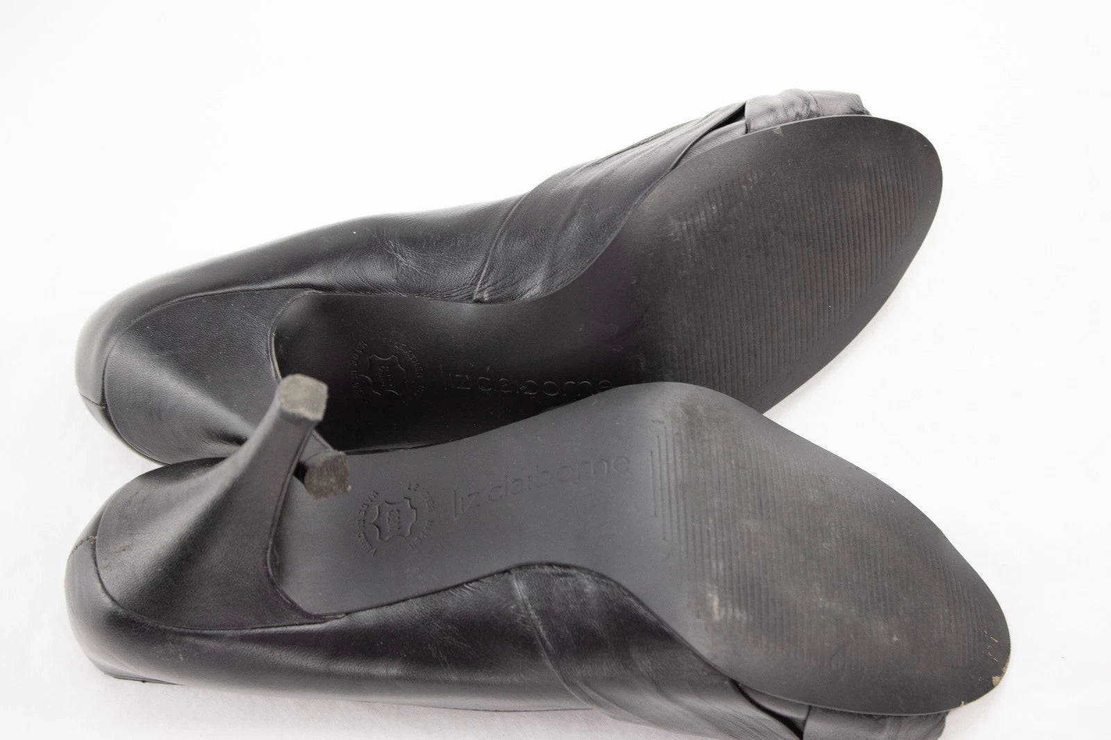 Liz Claiborne Black Leather Heels | “Grace” 8.5M Peep-Toe Pumps | Vintage