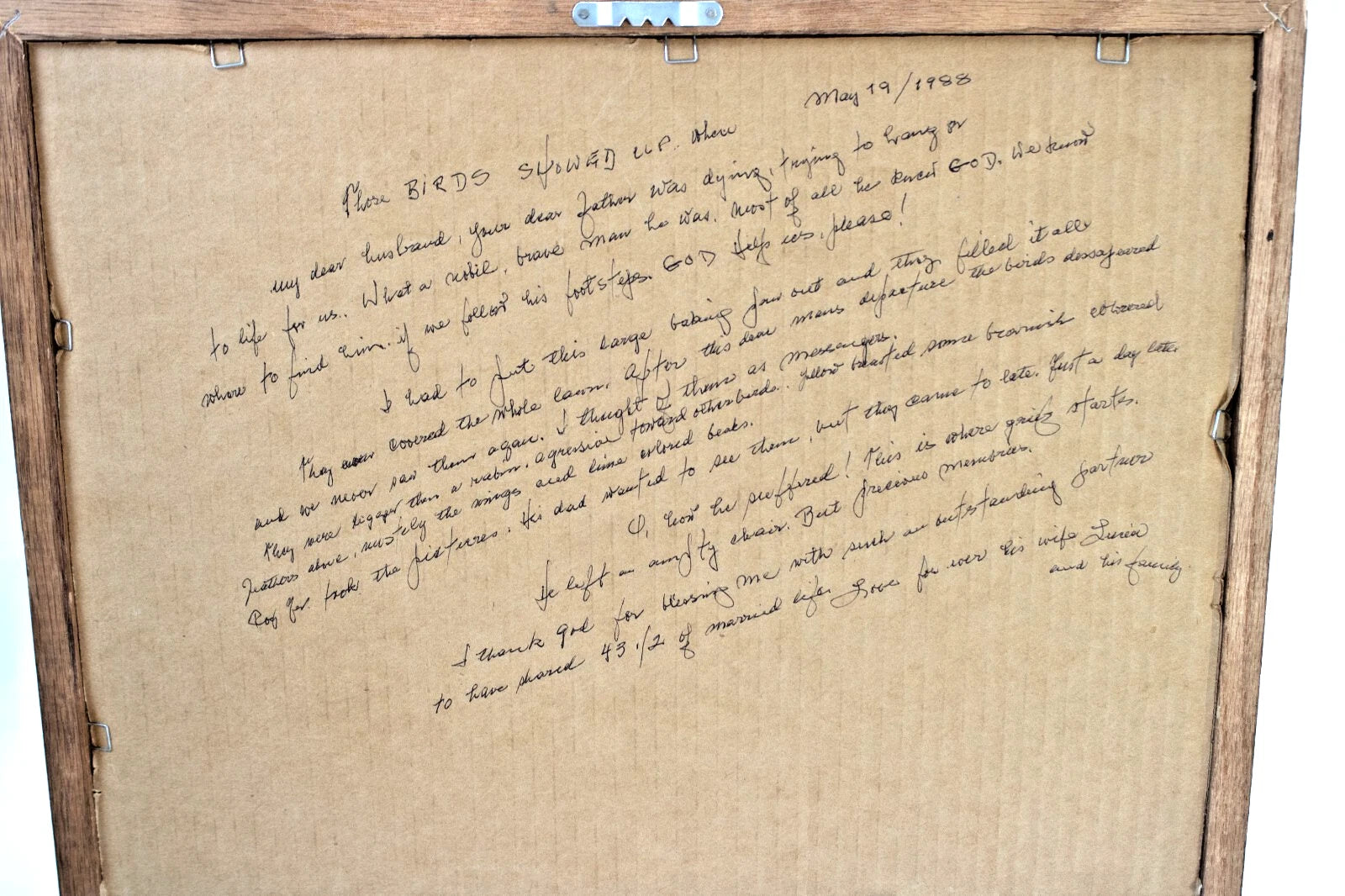 What makes this set especially rare is the heartfelt handwritten note on the back of the larger frame, dated May 19, 1988. The note references a deeply personal and spiritual moment in the life of the original owner, making this set not only a visual piece but also an emotional keepsake.