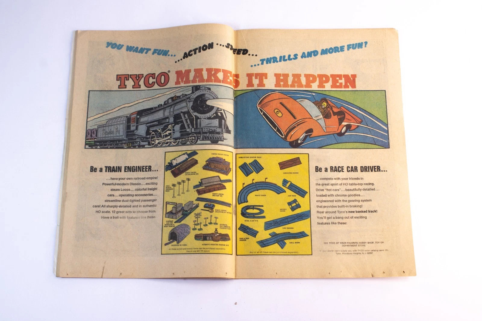 Good mid-grade condition (approx. 4.0-5.0). Cover colors remain bright with some spine stress, light creases, and minor edge wear. Interior pages are intact and fully readable with moderate tanning consistent with age. No cutouts or missing pages. Structurally sound with solid staples.