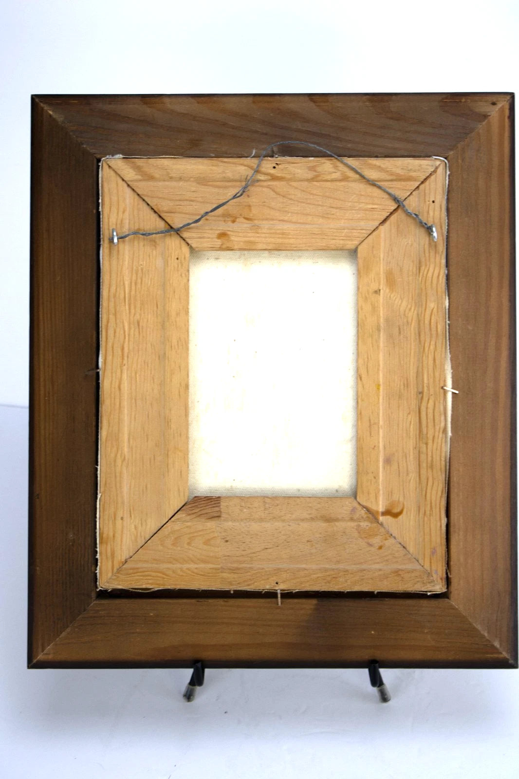 Excellent vintage condition. The painting is bright and intact with no flaking or visible wear. The frame has honest wear along the edges - scuffs, tiny nicks, and marks that only add to its rustic charm. Clean back, tight canvas, solid construction throughout.