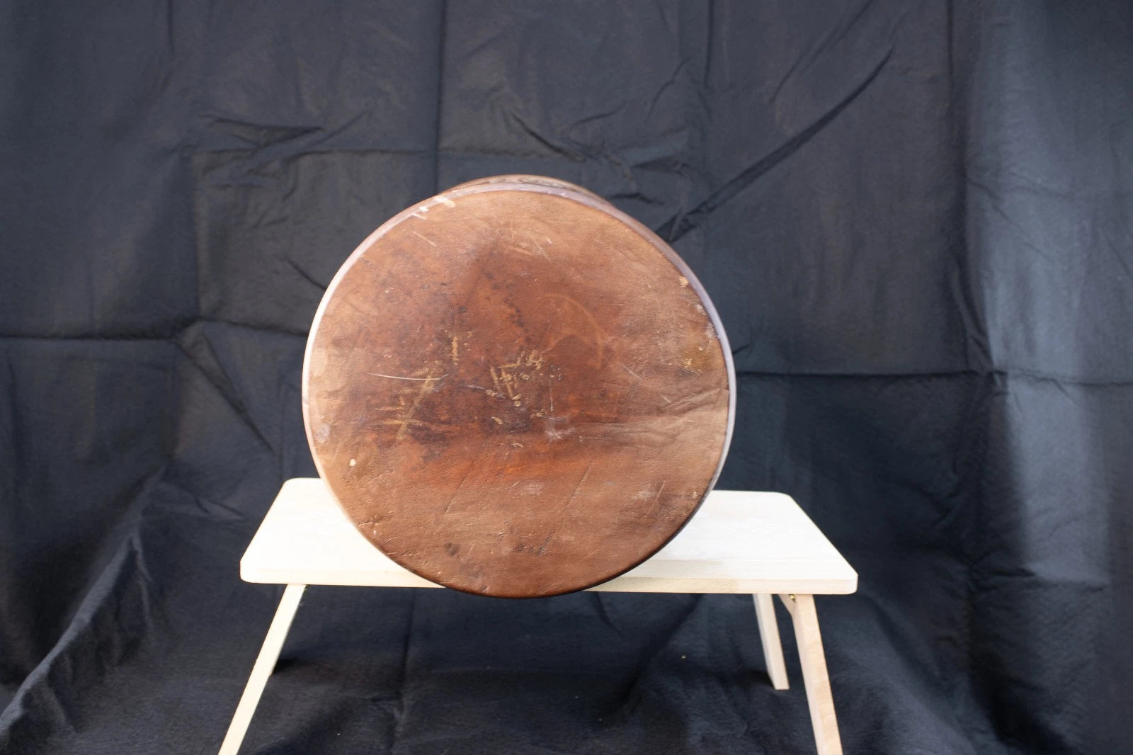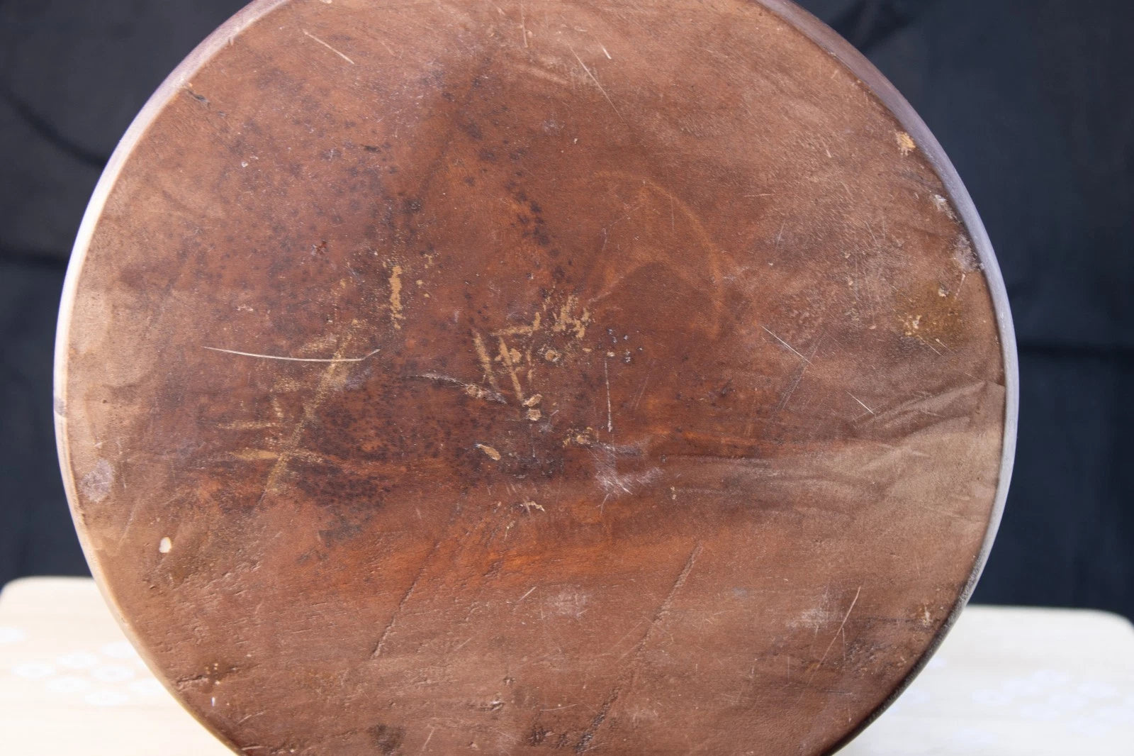 Good vintage condition with expected age wear. Notable details include a visible split in the lid, a small rim chip, and minor scuffing along the base - all stable and secure. Displays beautifully and lid still fits properly.