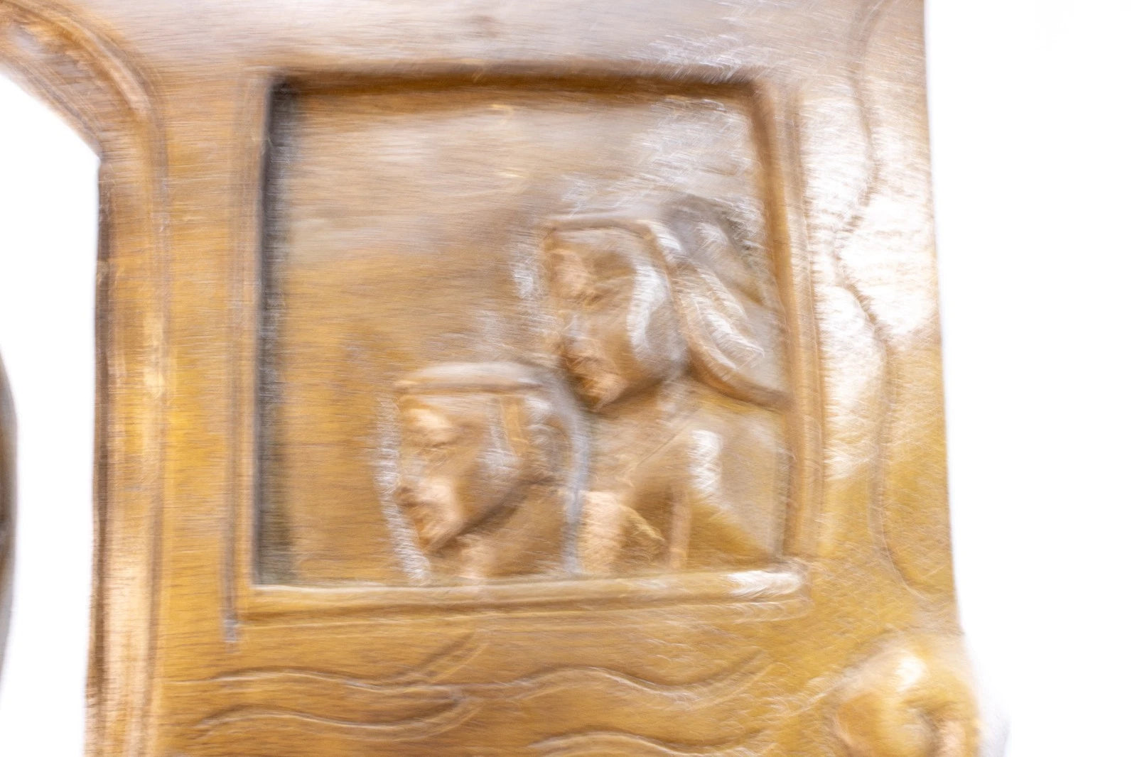 Item: Hand-carved wood wall art - horse-drawn carriage scene