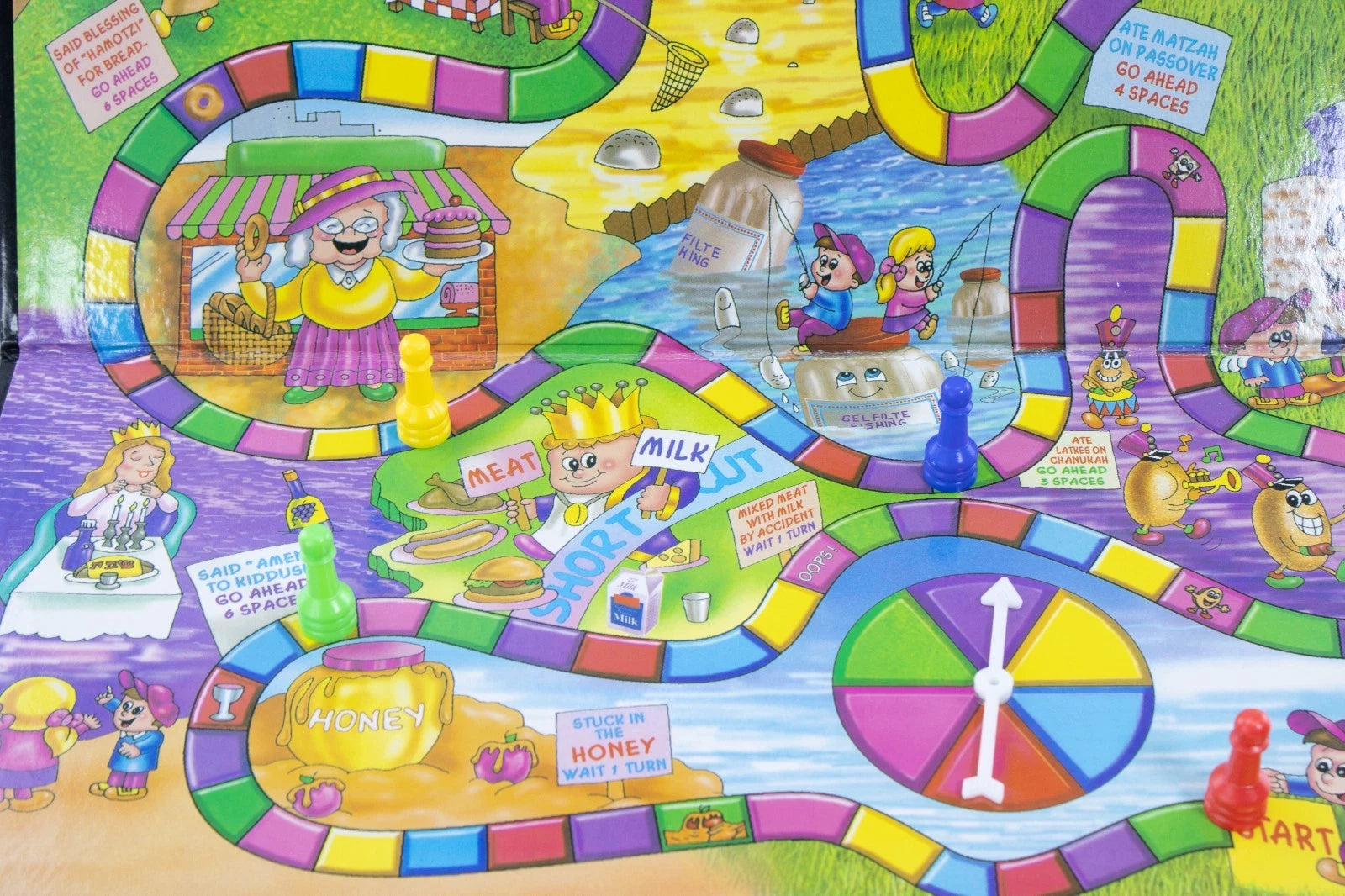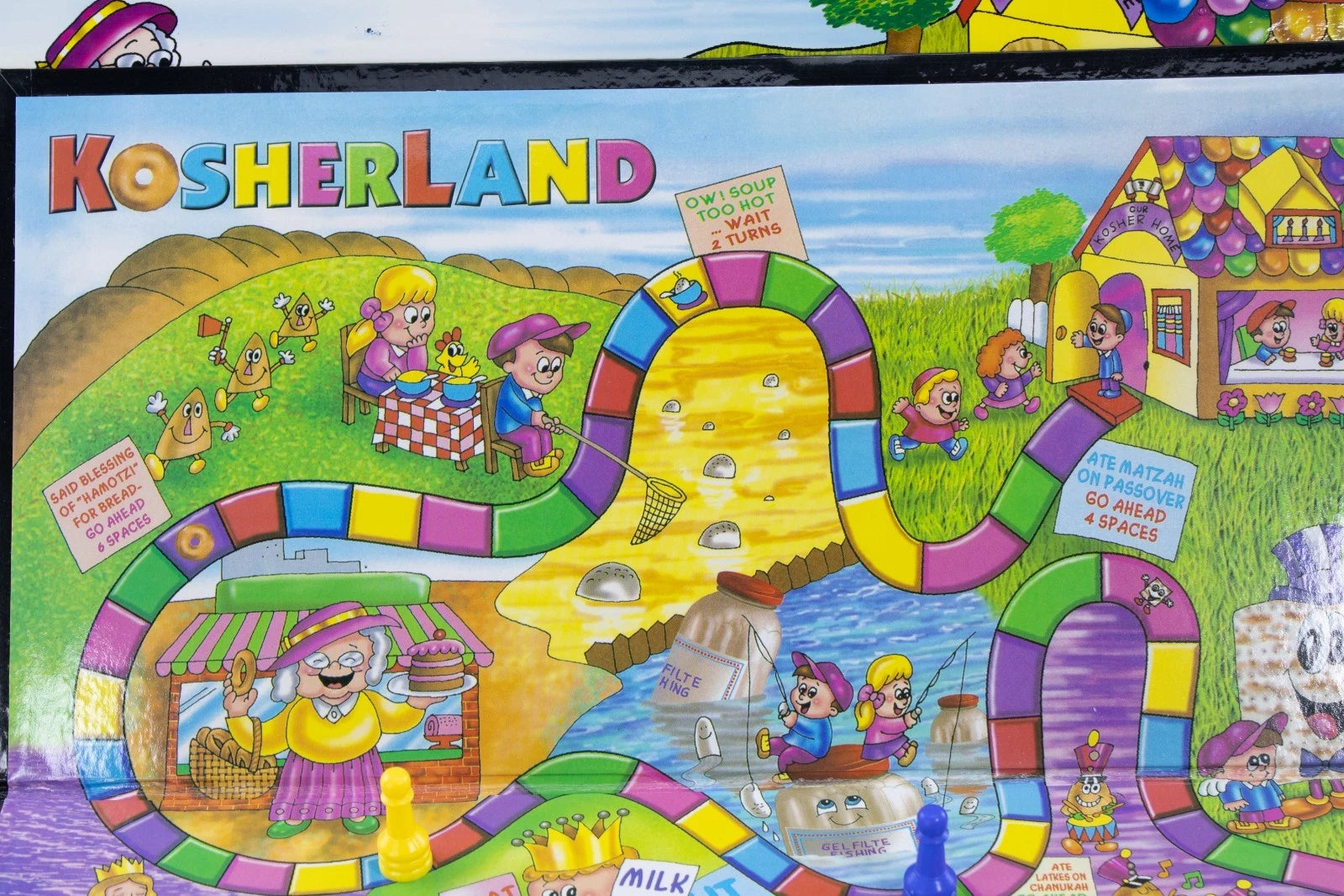 Get ready to spin, giggle, and learn with Kosherland, the 1985 board game that brings Jewish learning to life with color and charm! Made by Jewish Educational Toys (JET), this Candyland-style classic walks children through kosher concepts using cheerful characters like Mr. Matzah, the Shabbos Queen, and even a marching latke band.