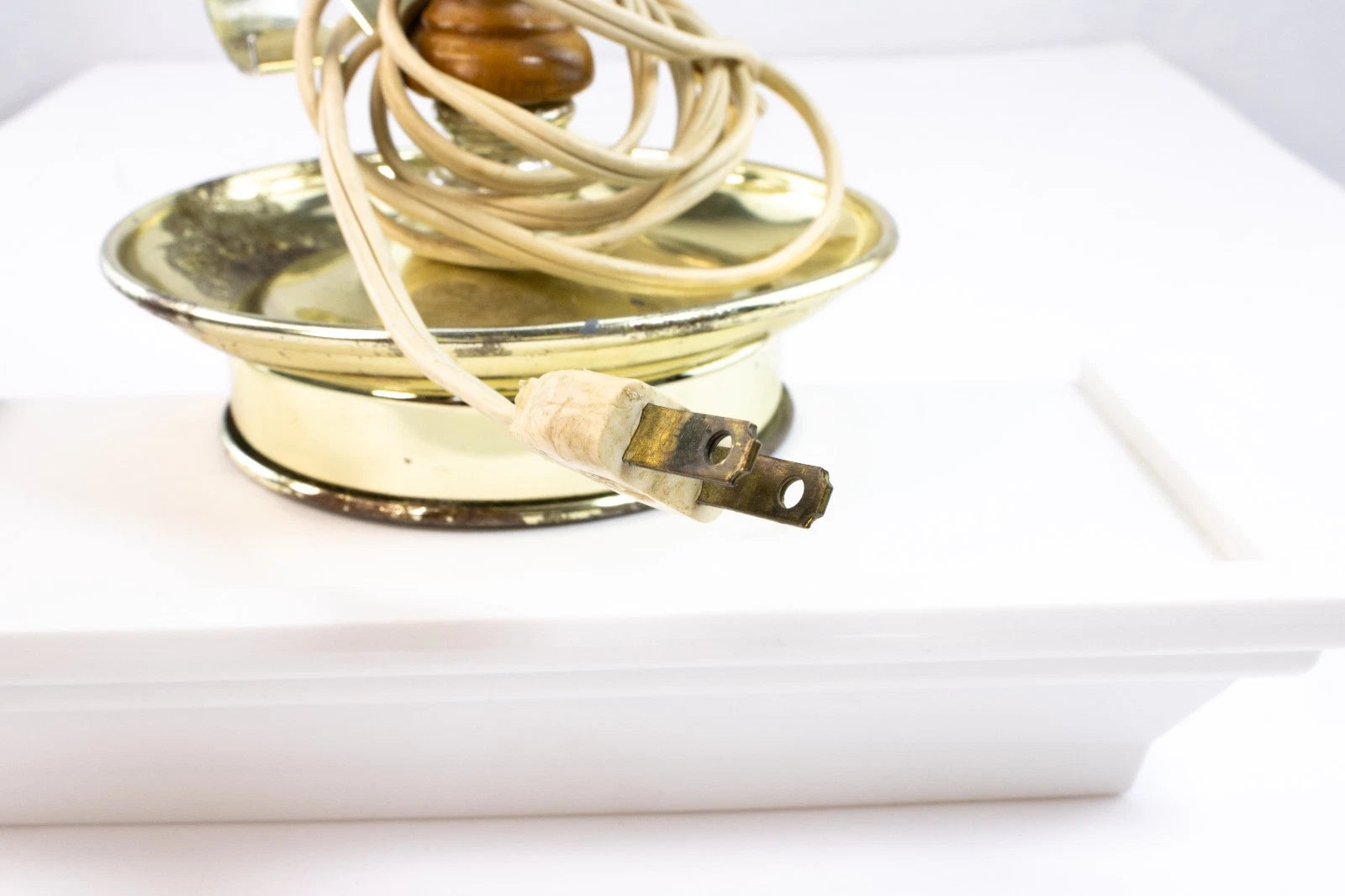 Vintage Mid-Century Electric Table Lamp Base – Brass & Wood Oil-Style Design