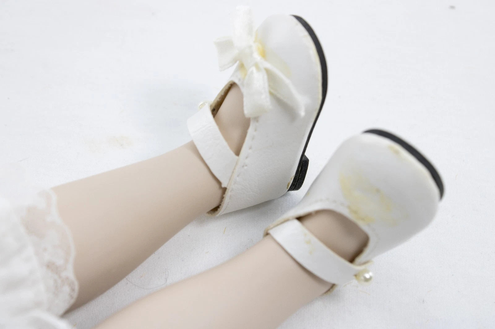 Porcelain, cloth body, lace, satin ribbon, vinyl shoes
