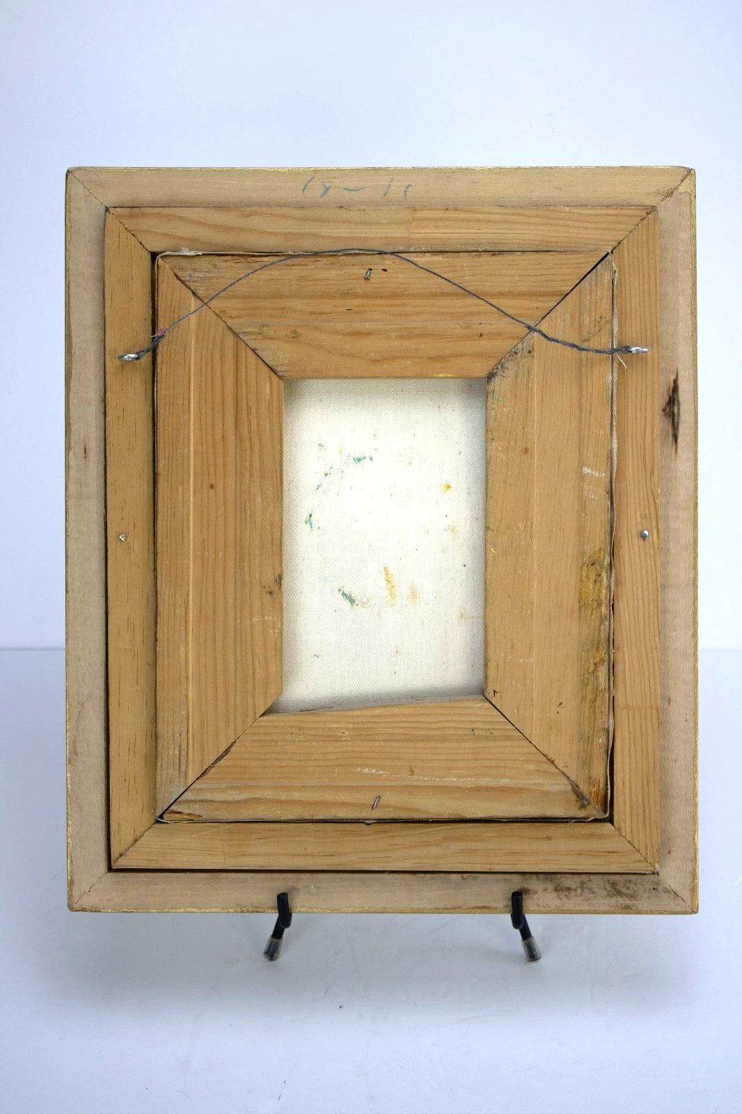 Very good vintage condition. No visible tears or paint loss on canvas. The wood frame shows light wear consistent with age, including some edge wear and mild scuffing. Backside has some patina and spotting typical of age, but nothing structural. Ready to hang and enjoy.
