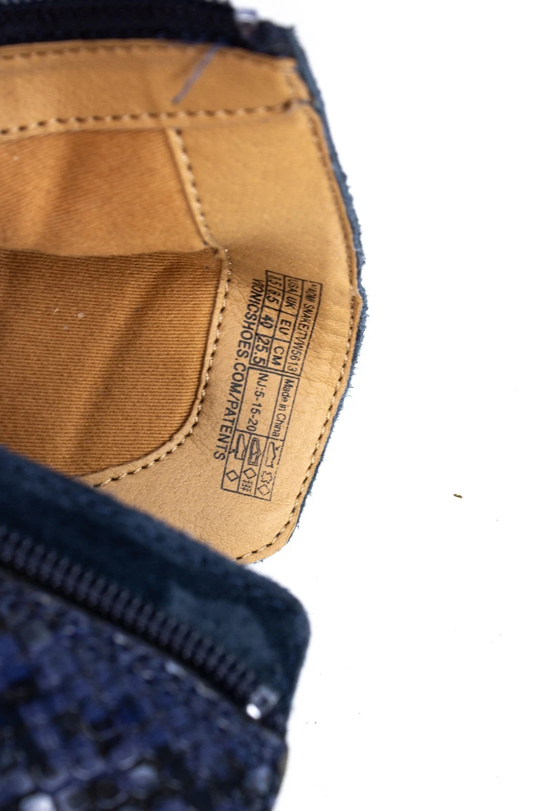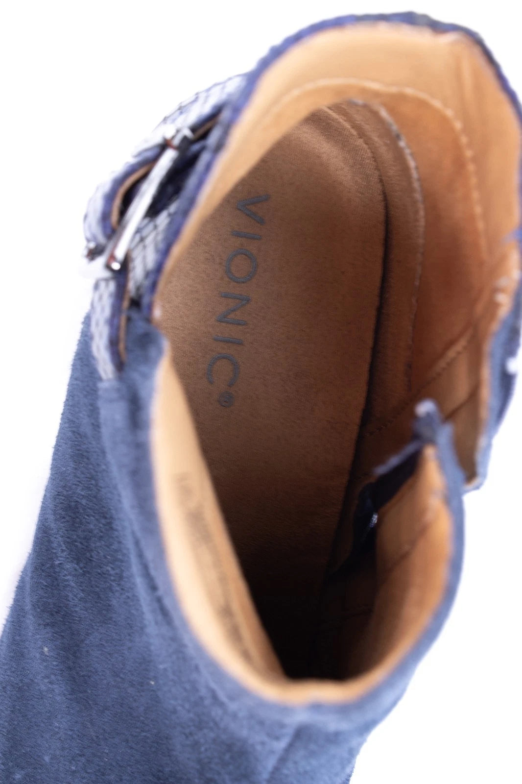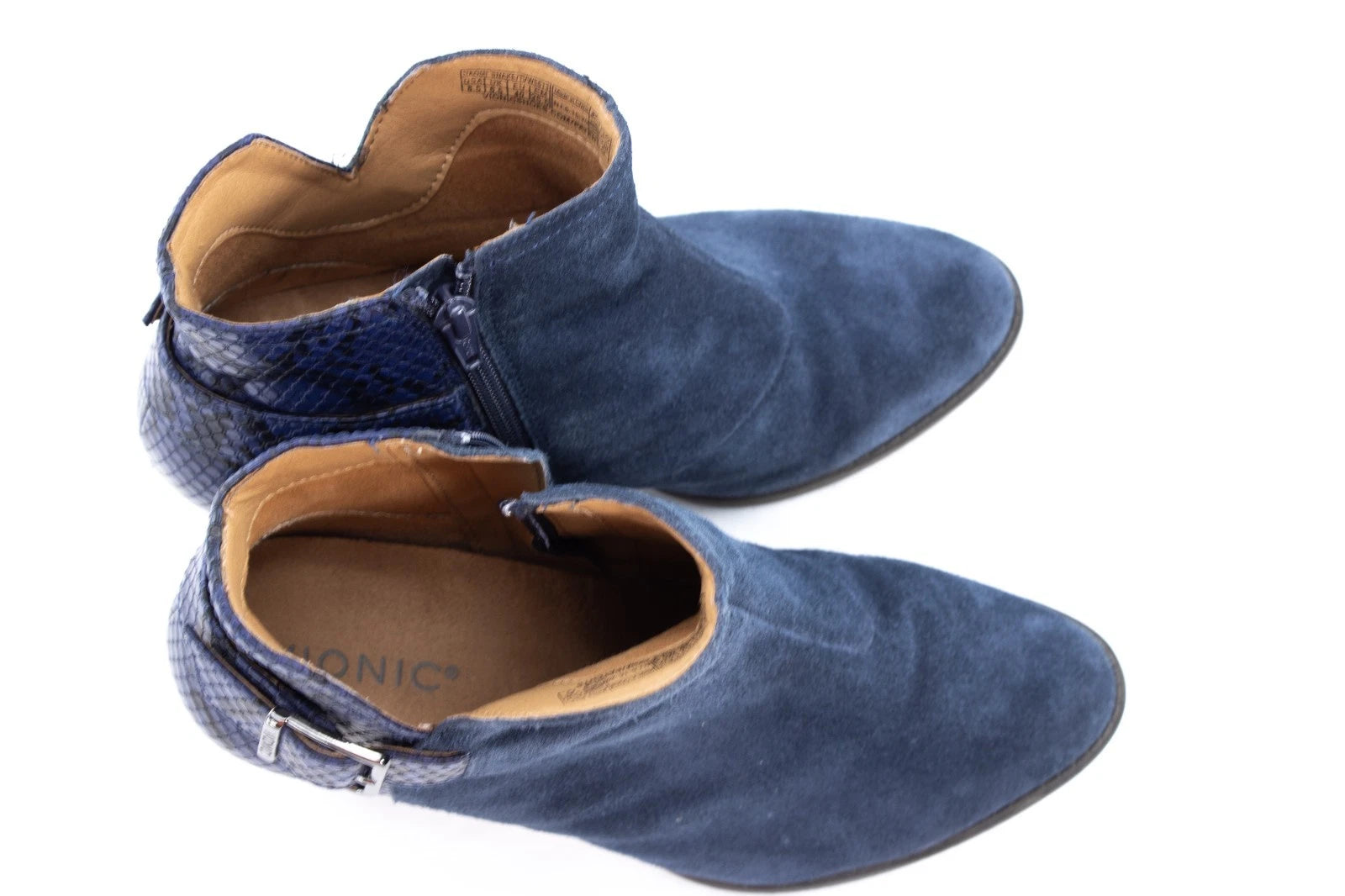 Vionic Navy Suede & Snake Print Ankle Booties – Women’s 8.5M Block Heel Zip Boot