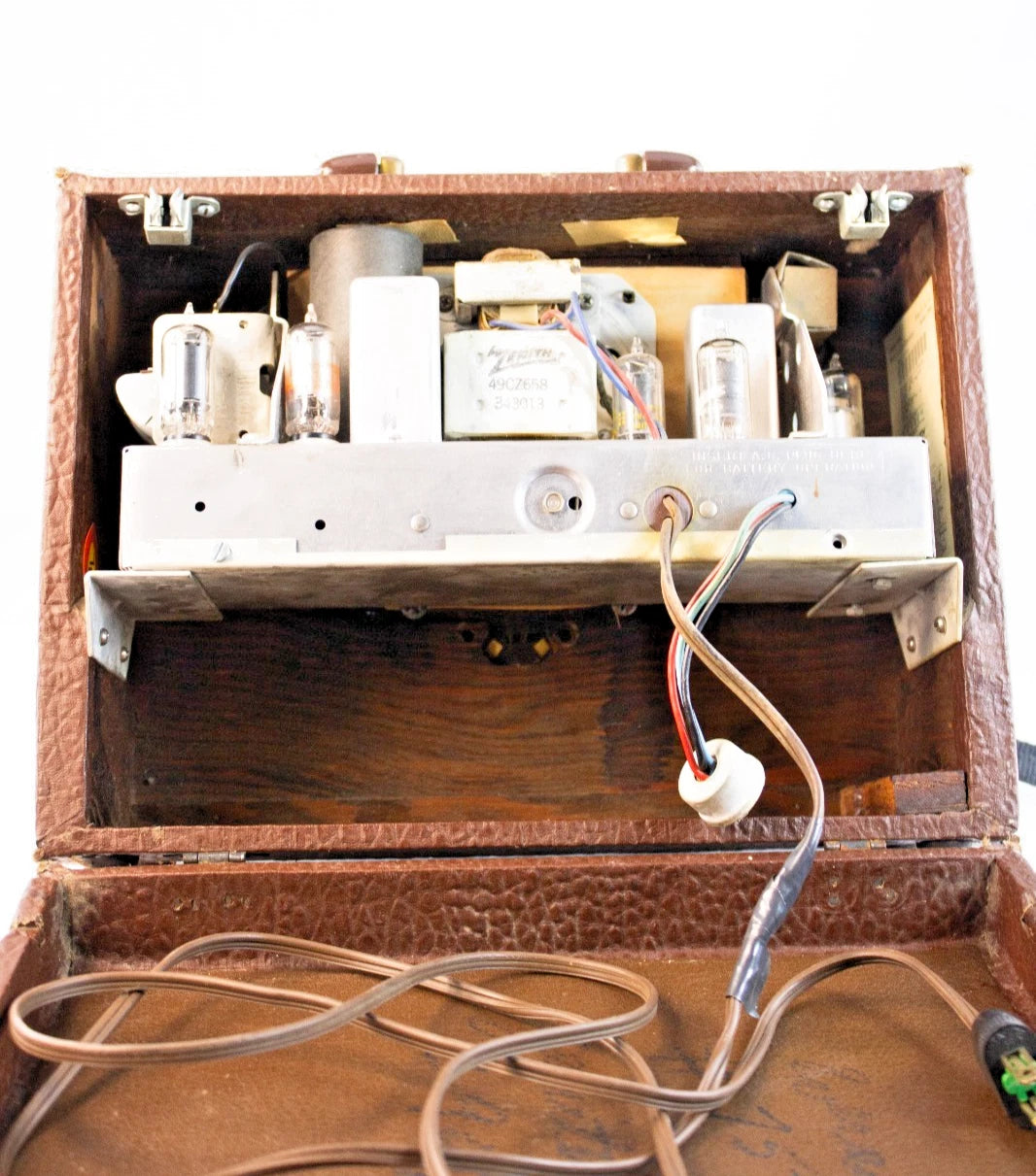 Zenith marketed their radios as "The Royalty of Radio" - and they weren't kidding. This model's Art Deco lines and suitcase styling made it as stylish as it was practical for postwar homes and travelers.