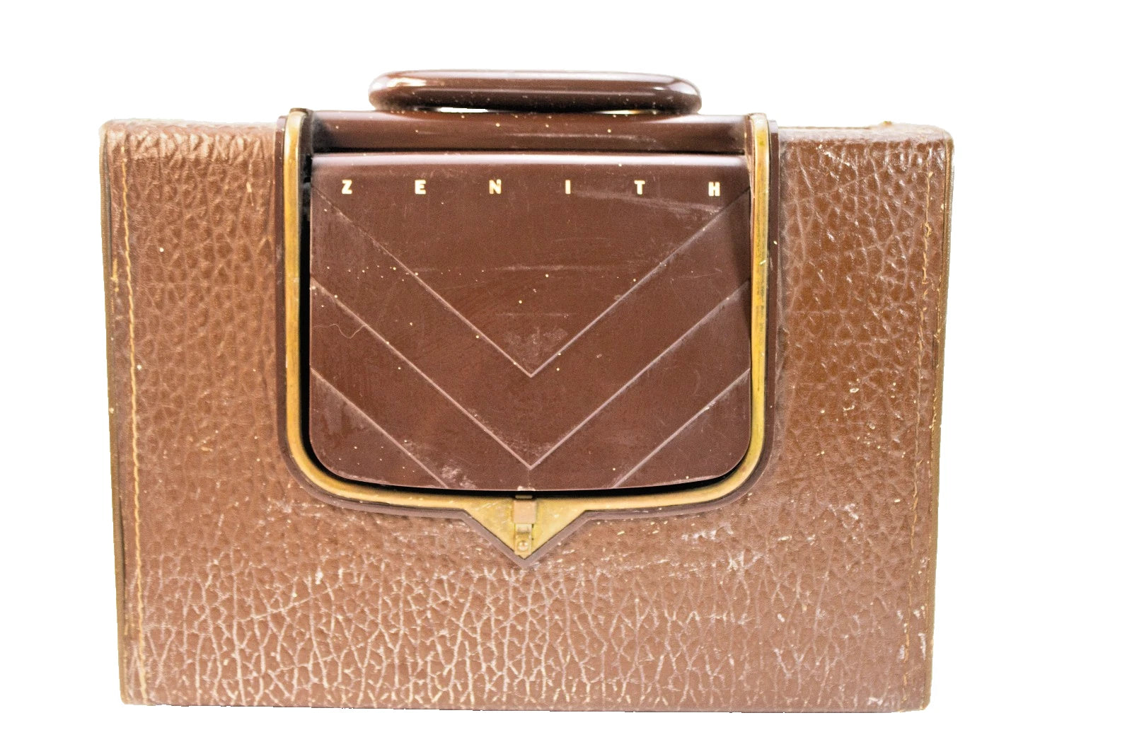 Working Vintage Zenith Tube Radio Z909 β Brown Leatherette Case Illuminated Dial